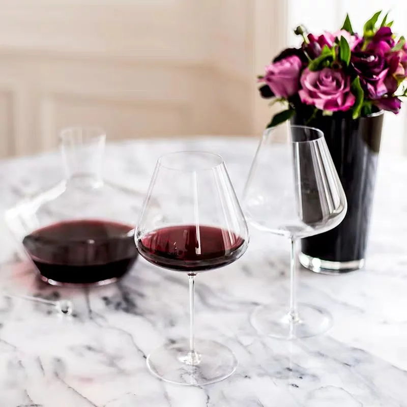 Handmade from pure crystal, this goblet is not only visually striking but also incredibly thin, giving it a light and airy feel that enhances the elegance of your table setting. Its transparent finish allows the rich colors of your wine to shine through, making it a stunning addition to any occasion.
